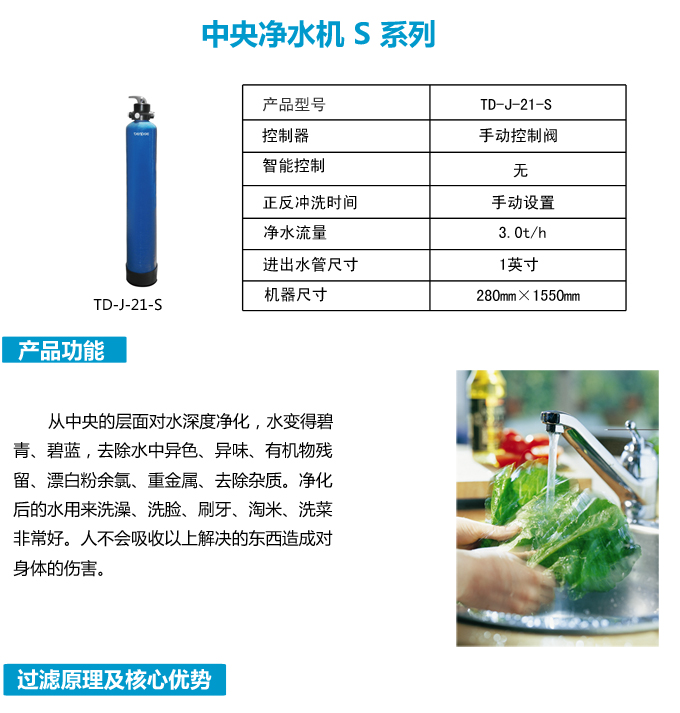 手動全屋中央凈水機(jī)有效去除水中的異色、異味;進(jìn)一步濾除水中微小雜質(zhì)、膠狀體;去除水中的漂白粉余氯、農(nóng)藥、重金屬;保留對人體有益的礦物質(zhì)。使水變得碧清、碧藍(lán),去除對人體有害的物質(zhì)。