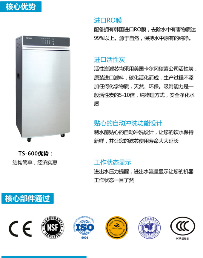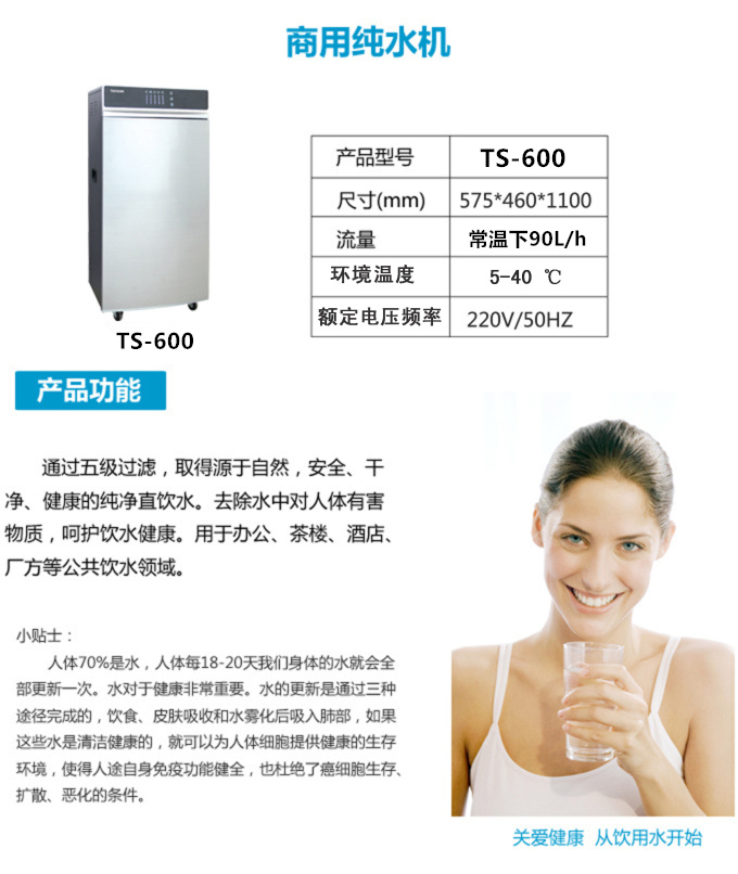 恬凈商用純水機(jī)可用于豪華別墅、辦公室、學(xué)校、茶樓等公共場(chǎng)所,解決公共飲水問題。恬凈商用純水機(jī)能夠去除水中所有有毒氣體及重金屬全部去除,水燒開再也不會(huì)結(jié)垢,口感甘甜,綿柔,讓飲用水更健康、更安全、更衛(wèi)生。
